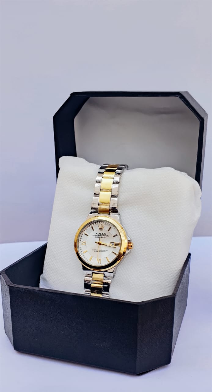 Add a touch of timeless luxury to your wrist with the Rolex Golden Women’s Watch, designed for women who appreciate classic elegance and premium craftsmanship. This sophisticated timepiece features a high-quality stainless steel case with a striking gold-tone bezel, creating a refined and prestigious appearance.